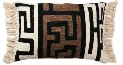 Affari Fernando kuvioitu koristetyynynpäällisessä on hapsut, jotka tuovat lisää ilmettä jo muutoin kauniisti graafisesti kuvioituun, rouheaan tyynynpäälliseen. Valmistettu Intiassa puuvillasta. Sisätyyny hankittava erikseen.