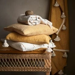 Rouheapintainen ja rento Affari Maja torkkupeitto on valmistettu 100% puuvillasta. Torkkupeiton luonnonvalkoisella pohjalla on mustia sekä sinapin värisiä koristeraitoja. Päissä hapsut. Asettelemalla torkkupeiton rennosti sohvalle tai sängylle luot kodikasta ilmettä hetkessä.