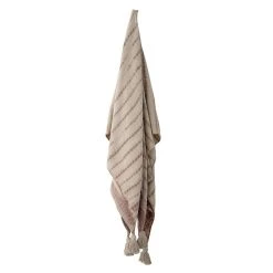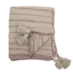 Tähän Bloomingvillen torkkupeittoon on mukava kääriytyä kylminä iltoina. Torkkupeitto on valmistettu kierrätetystä puuvillasta kutomalla. Materiaali on 53% puuvillaa, 30% polyesteria, 9% akryyliä ja 8% viskoosia. Peiton kaikissa kulmissa on tupsut.
