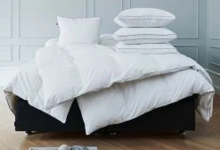 Familon Hotel Style Down untuvapeitto 150×210 cm on lämmin peitto, joka on vastuullinen valinta. Untuva ja höyhenet ovat 100% RDS-sertifioitua. Hengittävä ja ilmava peitto ehkäisee hikoilua ja tarjoaa ihanat unet aina aamuun asti. Peiton päällinen on laadukasta untuvan kestävää 100% puuvillaa ja täyte 60% ankan untuvaa ja 40% ankan höyhentä. Familon käyttää tuotteissaan ainoastaan eettisesti tuotettua ja jäljitettävää untuvaa ja höyhentä. Peiton reunoissa on hopeanvärinen satiiniterenauha. Peittoa kannattaa tuulettaa 48 tuntia ennen käyttöönottoa, koska luonnontuotteessa voi olla aluksi ominaistuoksu. Peitto sopii erinomaisesti niille, jotka eivät halua liian viileää eikä liian kuumaa untuvapeitettä. Peitolla on ÖKÖ-TEX sertifikaatti, joka takaa ettei tuote sisällä ympäristölle tai terveydelle haitallisia aineita. Tuote korvaa aiemman Familon Silver Responsible -untuvapeitteen.