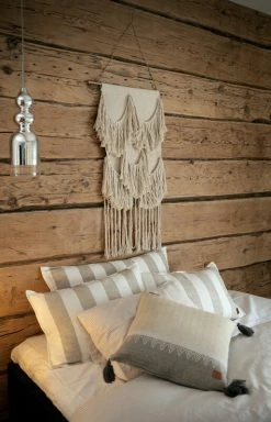 Fanni K Hanko koristetyyny on suuri tyyny, se on 50×80 cm kokoinen. Hanko on raidallinen koristetyyny kudotusta 100% puuvillaisesta eläväpintaisesta kankaasta. Raitakuosi on klassinen valinta ja aina ajankohtainen. Päällinen on irrotettava ja pestävä. Isolla Hanko tyynyllä tuot helposti kotiin raikkautta ja runsautta.