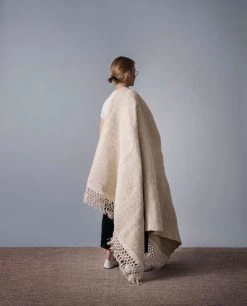 Ylellisen kaunis Naava viltti on valmistettu käsityönä villasta ja pellavasta. Siihen on ihana kääriytyä tai sen voi laittaa sängynpeitteeksi. Suunnittelija: Marianne Huotari / Studio Smoo.