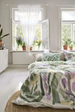 Kukkakuosillinen satiinipussilakanasetti tuo hempeyttä ja väriä . Valmistettu laadukkaasta luomupuuvillasta. Puuvillasatiini sopii erityisen hyvin allergikoille. Pussilakanan yläosan käsiaukot helpottavat pussilakanan laittamista peiton päälle. Pussilakana on kaksipuoleinen: toisella puolella on kaunis kukkakuosi, kääntöpuoli on yksivärinen. Kumpula-satiinipussilakanasetti on ylellistä satiinia, joka hellii nukkujaa tuntuen iholla sileän pehmeältä. Puuvillasatiinin kaunis kiilto ja sileys saadaan aikaan kankaankudonnassa käytettävällä satiinisidoksella. Säilytät kauniin kiillon ja pehmeyden pitkään, kun silität tai mankeloit lakanat pesun jälkeen. Puuvillasatiiniin lankaluku eli kankaantiheys (TC) on korkea, 228 TC. Mitä suurempi lankaluku, sitä tiiviimpi kangas.