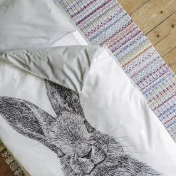 Todella söpö Finlayson Pupu vauvan pussilakana ja tyynyliina. Pussilakanan koko 125×85 cm ja tyynyliinan koko 40×60 cm. Villipedoista tuttu Pupu-kuosi ilahduttaa lastenhuoneessa sekä nukkujaa että nukuttajaa. Suunnittelija Jenni Kunnas. Pussilakana on kaksipuolinen: toisella puolella on kuosi, toinen puoli ja tyynyliina ovat yksiväriset, sävynä rauhoittava harmaa. Pussilakanat ovat 100 % luomupuuvillasta valmistettua laadukasta palttinapuuvillaa, joka tuntuu ihanan pehmeältä lapsen iholla ja kestää erinomaisesti käyttöä ja pesukertoja korkeissa lämpötiloissa. Puuvillapalttinan lankaluku eli kankaantiheys (TC) on 152 TC, mikä kertoo kankaan tiiviydestä. Puuvillapalttina onkin varma ja turvallinen valinta vuodetekstiileihin. Pussilakanan yläosan käsiaukot helpottavat pussilakanan pukemista peiton päälle.
