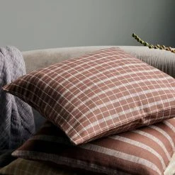 House Doctor Thame ruutu tyynynpäällinen on valmistettu OEKO-TEX® 100 -sertifioidusta puuvillasta, jossa on paksu kudos, joka tuo rakennetta ja pehmeyttä päälliselle. Kaunis ruskean sävy sekä ruutukuvointi tuovat lämpöä ja kodikkuutta sisustukseen. Se sopii ihanasti eri ruskean sävyjen, kuten kastanjanruskean, kamelin tai hiekan kaveriksi. Yhdistele erilaisia kuviointeja sekä tekstuureja, kuten puuvillaa, pellavaa ja samettia luodaksesi pehmeän ja kotoisan rentoutumispaikan sohvalle tai sängylle.