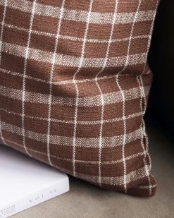 House Doctor Thame ruutu tyynynpäällinen on valmistettu OEKO-TEX® 100 -sertifioidusta puuvillasta, jossa on paksu kudos, joka tuo rakennetta ja pehmeyttä päälliselle. Kaunis ruskean sävy sekä ruutukuvointi tuovat lämpöä ja kodikkuutta sisustukseen. Se sopii ihanasti eri ruskean sävyjen, kuten kastanjanruskean, kamelin tai hiekan kaveriksi. Yhdistele erilaisia kuviointeja sekä tekstuureja, kuten puuvillaa, pellavaa ja samettia luodaksesi pehmeän ja kotoisan rentoutumispaikan sohvalle tai sängylle.