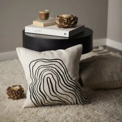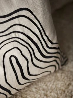 Tyylikäs tyynynpäällinen vahvaa puuvillakangasta, jossa on brodeerattu kuvio. Tyynynpäällisessä on vetoketju alareunassa. Sisätyyny myydään erikseen. Tyyny näyttää muhkealta kun sisätyyny on hieman tyynynpäällistä isompi, noin 50×50 cm.