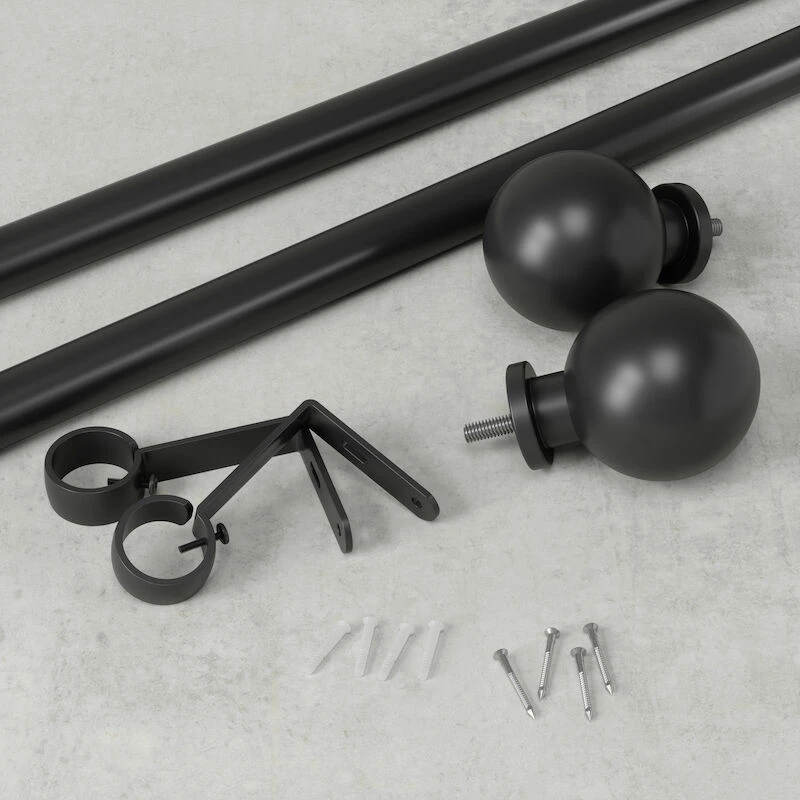 Umbra Bolas verhotangossa on klassiset pallon muotoiset päädyt. Bolas sopii hyvin erilaisiin sisustuksiin, sillä se on kuitenkin yksinkertainen ja kaunis verhotanko. Teleskooppitankojen pituus on säädettävissä. Tanko on valmistettu teräksestä ja sen halkaisija on 2,5 cm. Pakkaus sisältää kaikki tarvittavat asennustarvikkeet. Verhotangossa on ympäristöystävällinen viimeistely. Sopii erikokoisiin ikkunoihin, koska pituuden säätö on välillä 183-365 cm. Verhotangon etäisyys seinästä on 6,9 cm.