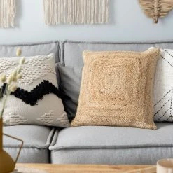 Juuri koristetyyny tuo sisustukseen rouheutta ja näyttävyyttä. Väri kauniin luonnollinen. Materiaali juutti ja puuvilla, täyte polyester.