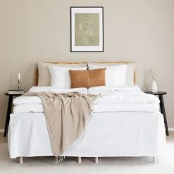 Lempi helmalakanassa on tyylikäs ja yksinkertainen malli, kulmissa on laskokset. Kauniit, neutraalit värisävyt ovat sävy sävyyn Lempi muotoonommellun aluslakanan sekä tyynyliinan kanssa. Helmalakana tuo tyylikkään ja huolitellun ilmeen makuuhuoneeseen. Se piilottaa kätevästi sängyn jalat ja rungon, sekä viimeistelee kokonaisuuden tuoden hotellimaista tunnelmaa. Lakana pedataan sänkyyn patjan alle ja soveltuu käytettäväksi runkopatjan kanssa. Helma on kolmella sivulla, mikä helpottaa petaamista sängynpäädyn kanssa. 100% turkkilaista puuvillaa. Lakanan lankaluku on 144, joka ilmoittaa langantiheyden neliötuumalla. Kangas on värjätty ÖKÖ-TEX sertifikaatin mukaisesti eli tuotteet ovat tutkitusti käyttäjälle turvallisia. Helman korkeus on 45 cm.
