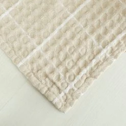 Linni käsipyyhkeet on valmistettu Ökötex sertifioidusta 100% puuvillavohvelista. Linnissä on harmoninen toistuva ruutukuosi, joka sopii hyvin skandinaaviseen kylpyhuoneeseen tai moderniin keittiöön. Pehmeäksi käsitelty puuvillainen vohvelipyyhe on silittämättä siistiä imukykyistä puuvillaa. Linni käsipyyhkeet ovat omiaan mökille, kotiin tai lahjapakettiin. Kuosi on ajaton, joten Linni on pitkäikäinen valinta. Rullapakkaus, jossa juuttinyöri.