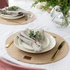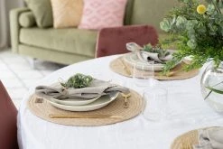 Oksa juuttitabletti on valmistettu 100% juutista ja sopii luonnonläheiseen ja ajattomaan sisustukseen. Juutti antaa rustiikkista tunnelmaa niin kotiin, kesäkeittiöön ja parvekkeellekin. Hoidoksi suositellaan tuuletusta ja paikallisten tuoreiden tahrojen puhdistamista kostealla liinalla.