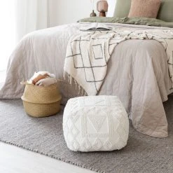 Kaunis kohokuvioitu Skandi rahi, jonka päällinen on 100% puuvillaa ja täytteenä polystyreenipalloja. Kudottu kohokuviointi rahin pinnassa on tehty rouheasta puuvillalangasta. Rahi on erinomainen sisustuselementti, joka toimii myös lisäistuimena tai lattiatyynynä.
