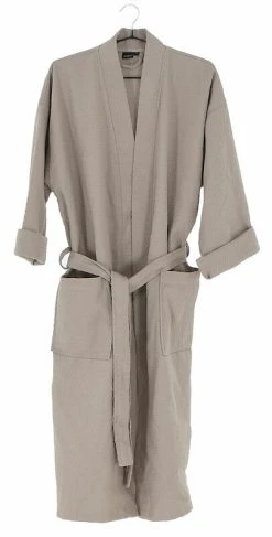 Tokio kylpytakit on valmistettu 100% turkkilaisesta puuvillasta.Tyylikkäässä, kevyessä kylpytakissa on hienostunut kudottu timanttikuvioinen pinta. Kimonomallinen kylpytakki pehmenee mukavasti käytössä pesujen myötä. Miehille ja naisille sopivassa kylpytakissa on solmittava vyö sekä kaksi taskua edessä ja ripustuslenkki niskasaumassa. Kylpytakki kutistuu enintään viisi prosenttia 60 asteen pesussa. Tokio kylpytakit ovat ÖKÖTEX sertifioituja, käyttäjälle tutkitusti turvallisia. Aamutakki tuo aamuun ripauksen rentoutta ja rauhaa, kun saat rauhassa valmistautua päivän askareisiin kiirehtimättä. Kylpytakit ovat kesämökille loistava valinta, ne on helppo antaa käyttöön myös vieraille.